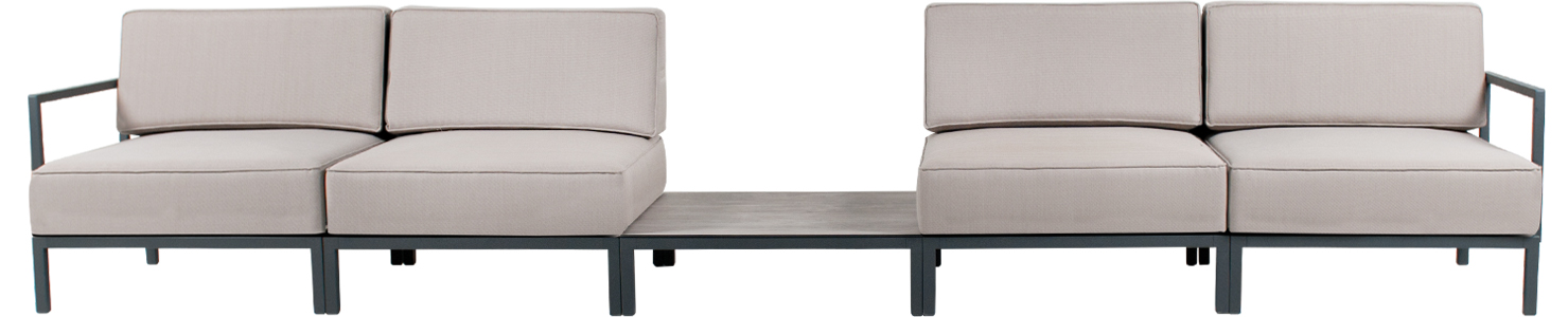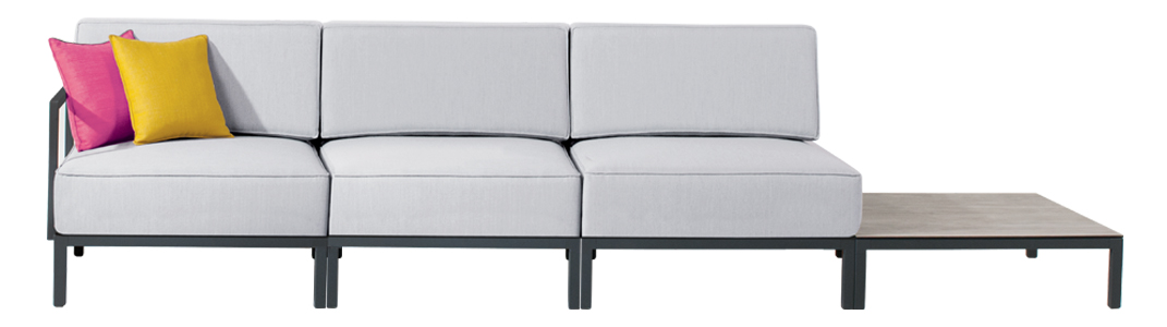 Slim Sofa set modüler sistemi sayesinde farklı kombinasyonlar oluşturma imkanı sağlar, modülleri biribirine ekleyerek ikili veya üçlü oturma grupları veya köşe takımları oluşturulabilir, kullanılacağı alana göre özgürce düzenlenebilir. Çarpıcı kumaş renkleri ve güçlü metal gövdesi ile iç ve dış mekanlarda yıllarca kullanılabilir.